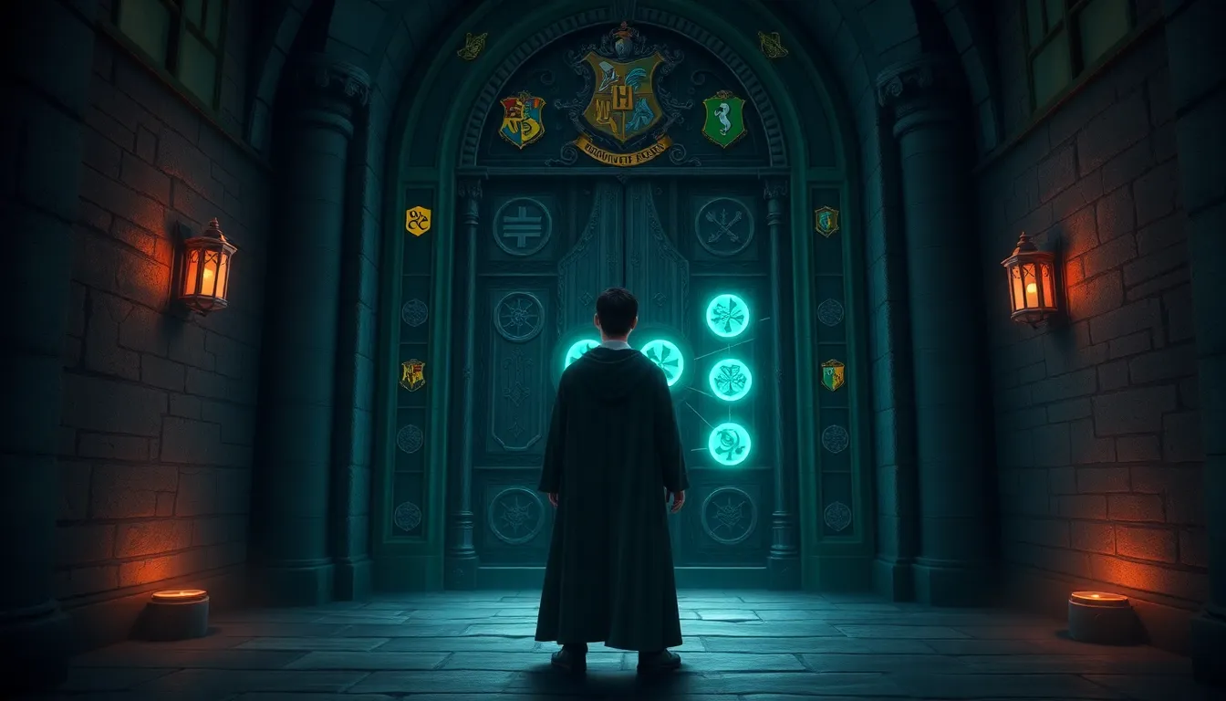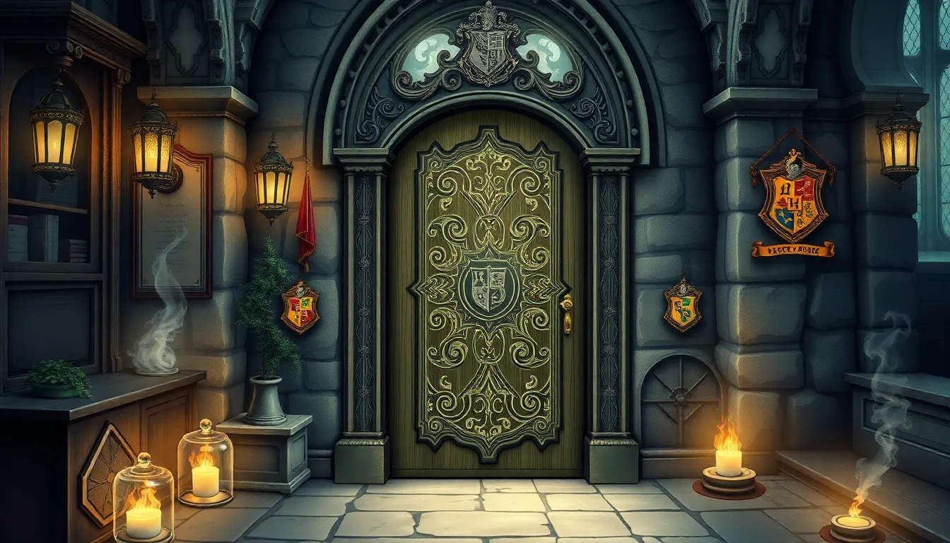 Symbol matching puzzles consist of aligning various symbols found on the door. Players must identify the correct symbols and replicate the given pattern. Success hinges on keen observation skills as visual clues scattered around can aid in finding the right combinations. Symbols often relate to Hogwarts lore, enhancing engagement. An example includes a door featuring house crests that require players to match the crests of Gryffindor and Slytherin. Solutions might necessitate a specific spell or interaction with nearby objects.